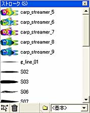 ![]() 【図20】 スケルタルストロークはカラーリングを少しだけ変更しただけのものを気軽に登録してみるとよいでしょう。元データをファイルとして保存しておけばいつでも再登録が出来るので、実験を兼ねていろいろと登録し、色々なパスに指定して処理結果の違いを確認してみると良いでしょう。 |