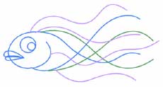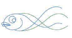 ![]() 【図14】 【図03】の状態はもっとも基本的な骨格部分ですので、あとの背ビレや腹ヒレに該当するイメージをパスだけで表現させます。ちょうど髪の毛が風になびくような感じを想像して描いてみてください。 |