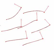 ![]() 【図48】 余談ですが、今回のように登録したストロークデータの構造が左端に具象的なオブジェクト、右端に抽象的な流れのイメージというような場合、単純な円に対してそのストロークを指定すると面白い効果を得ることが出来ます。さて、【図48】は【図28】~【図33】のどのストロークでしょうか? |