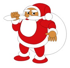 【図01】サンタクロースを描くというこでダイレクトにブラシツールを通常の線指定にしてラフスケッチを描いてみました。前回の鶴と亀のイラストのようにいきなり描くのが難しいと思う方は、りんごや茄子といったシンプルなものを描いて練習してみるとよいでしょう。大切なのは失敗を恐れずに沢山描くことです。 |