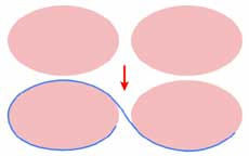 【図01】今回はペンツールを使ってイラストを描いてみます。Expressionの醍醐味はブラシツールで一気に描くことかも知れませんが、ペンツールをマスターすることで描き方のコツのようなものが理解しやすくなります。 まず【図01】のような任意の楕円を2つ配置し、その上に新規レイヤーを作成して楕円をトレースするようにS字型のカーブを作成します。始めて描く方は【図04】~【図08】の部分を先にお読み下さい。 |