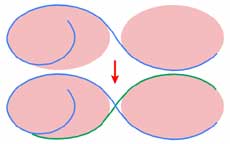 ![]() 【図02】 S字型のカーブを作成したら、左側のカーブを楕円の内側に巻き込むように修正します。続けて、最初に描いたS字と逆方向のS字(【図02】の下の緑色の線)を描きます。実はExpressionなどのDrawソフトのベジェ曲線のマスターは綺麗なS字が描けるかが分岐点となります。ただし、そんなに難しい処理てせはないので数回の練習で誰でも綺麗なS字カーブを描けるようになります。 ※図では独立したバスを識別しやすいように色を変更していますが、実際の作業ではその必要はありません。 |