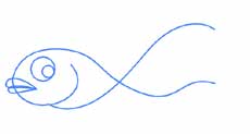 ![]() 【図14】 【図03】の状態はもっとも基本的な骨格部分ですので、あとの背ビレや腹ヒレに該当するイメージをパスだけで表現させます。ちょうど髪の毛が風になびくような感じを想像して描いてみてください。 |