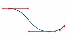 【図05】【図04】は3つのノードで構成されたパスです。このうち左側のノードのハンドルだけを下に回転移動させたものが【図05】です。 |