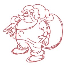 【図01】サンタクロースを描くというこでダイレクトにブラシツールを通常の線指定にしてラフスケッチを描いてみました。前回の鶴と亀のイラストのようにいきなり描くのが難しいと思う方は、りんごや茄子といったシンプルなものを描いて練習してみるとよいでしょう。大切なのは失敗を恐れずに沢山描くことです。 |