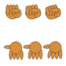 ![]() 【図11】 基本的にはベースとしたそれぞれの楕円の位置を調整しているに過ぎません。手を描くのは難しいと考えている方は、手のパーツを整理してもう一度イメージを膨らませてみてください。 |